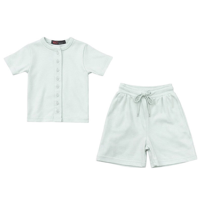 girls Mint Buttoned Ribbed Short Set